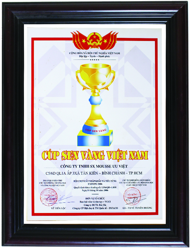 Năm 2003 , Công ty TNHH Nệm Ưu Việt vinh dự được trao tặng Cúp Sen vàng Việt Nam 2006